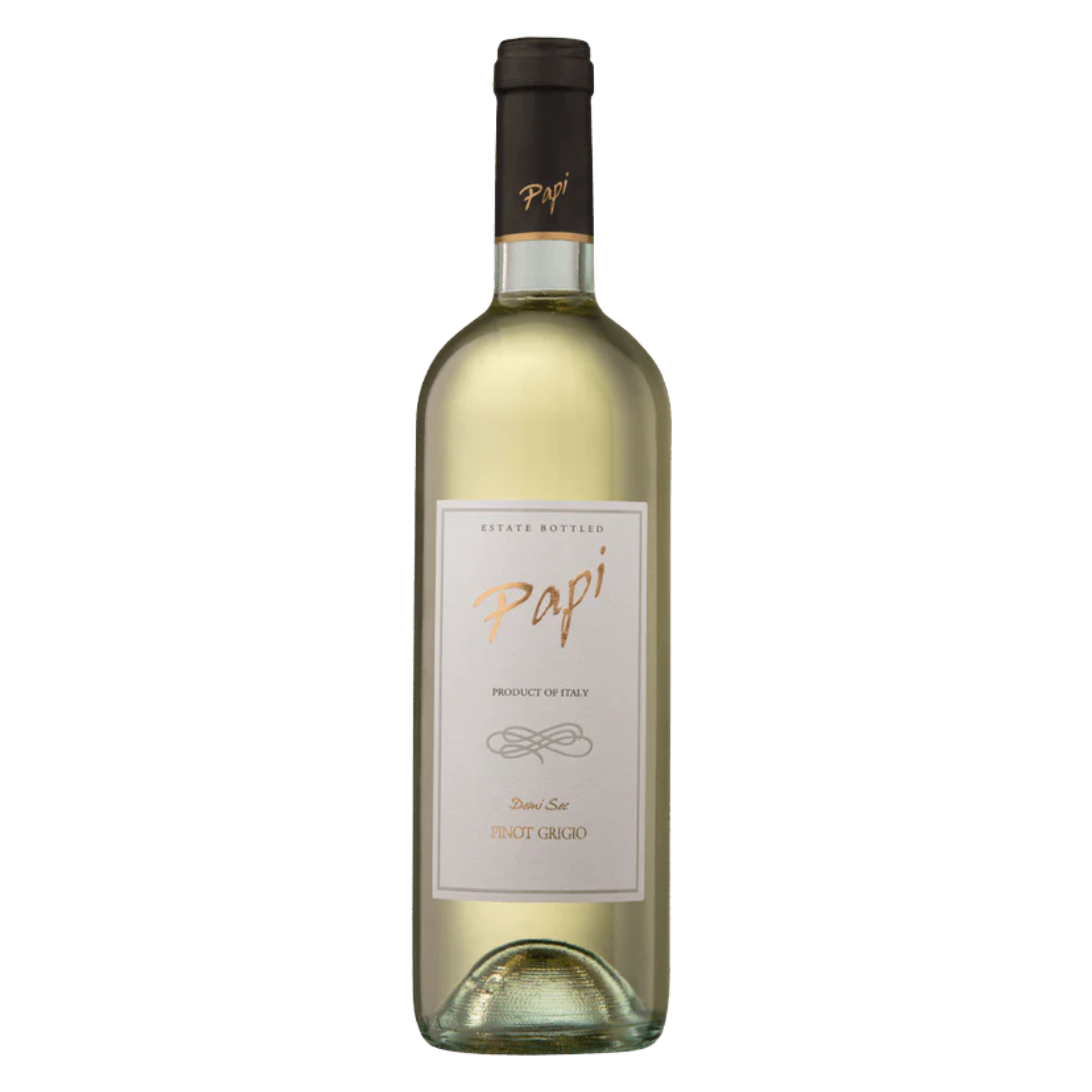 White wine with a clear lemon color and green reflections. Fresh pear and apple aromas are evident. This wine is a fresh, light-bodied white wine, supported by mild acidity. Papi Pinot Grigio pairs best with oysters, fish dishes, and salads of all sorts.